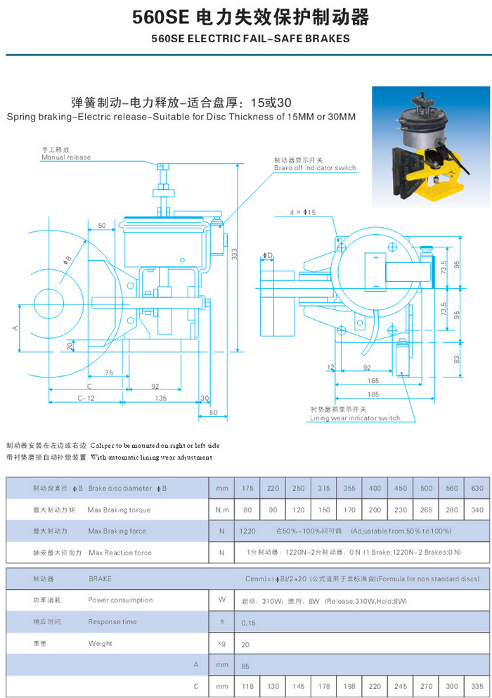 560SE電力失效保護制動器系列